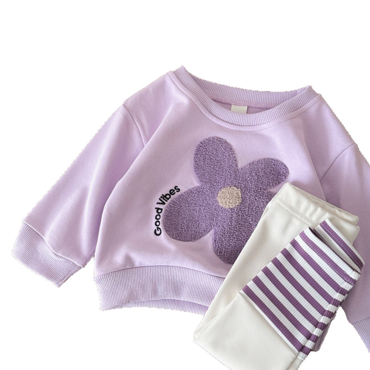 Bloemen Hoodie + Gestreepte Broek – Schattig 2-delig Setje